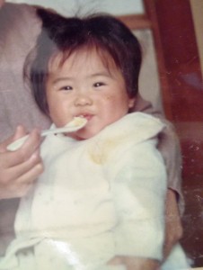 《写真:嬉しそうに離乳食を食べる娘・未来》