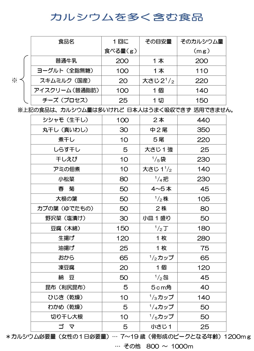 カルシウムは1日、1000mg必要ですが、日本人の平均は500mgしか摂れていません。