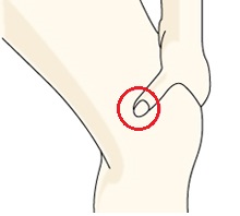 *ひざのお皿の内側上端から、指幅3本分