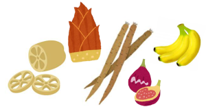 れんこん、アロエ、ごぼう、たけのこ、枝豆、海草類、卯の花、