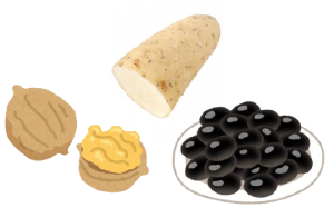 桑の実、くるみ、黒ゴマ、カシューナッツ、松の実、黒豆、山芋