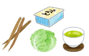 ごぼう、苦瓜、レタス、すいか、豆腐、緑茶、たんぽぽ茶 など