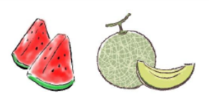 フルーツでは、西瓜(すいか)、香瓜(メロン)。