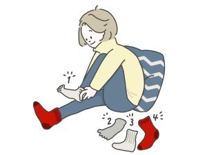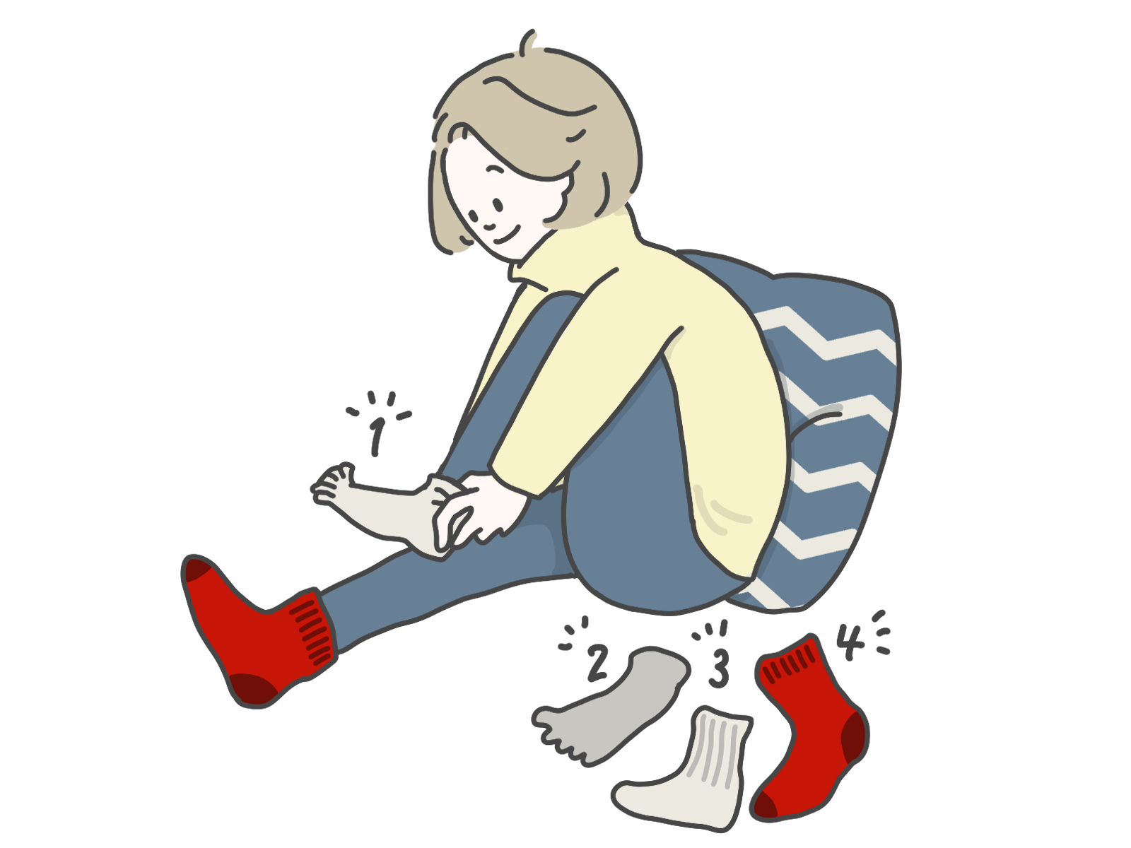 絹5本指→ウール5本指→絹先丸→ウール先丸の順番で靴下をはきます。