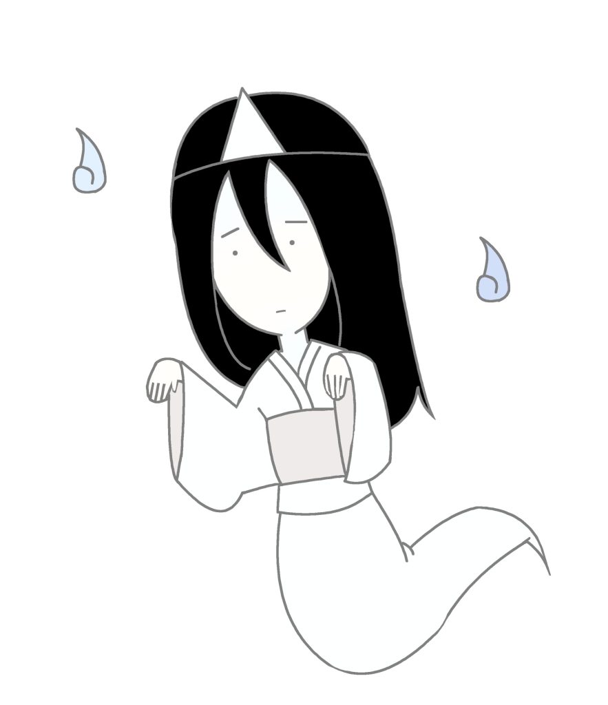長い髪を引きずって、手は前にだらんと垂らし、足がない。