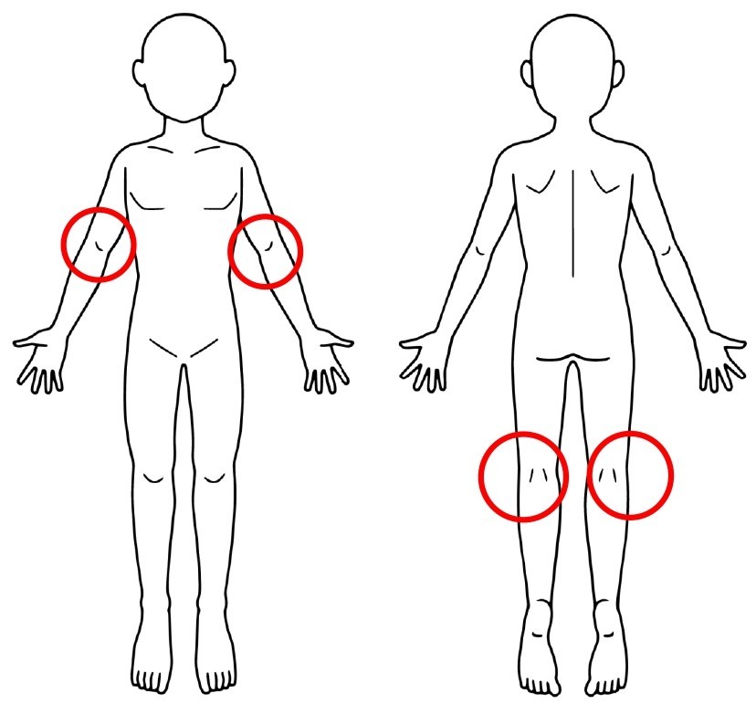 アトピー患者の80%は汗に対するアレルギーがあり、肘・膝の裏・顔といった汗の溜まりやすい部位に湿疹が出やすいことがわかっていました。