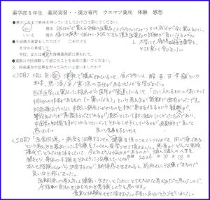 ウエマツ薬局に実習に来られた、薬学部5年生の感想文をご紹介します。