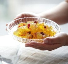写真「クコの実入り紅花ゼリー」