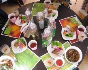 その後の茶話会も十全大補スープや梨の寒天寄せなどが並び、
