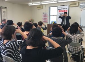 実際に参加者の皆様で目と耳の体操を行い大好評でした。