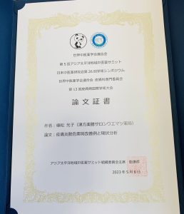 シンポジウムでは「アトピー性皮膚炎の再発防止」について講演し、証書を頂きました。