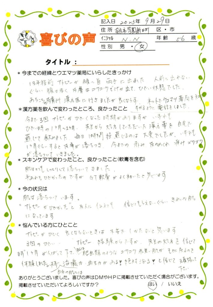 あちこちの皮膚科、漢方医に行きましたが良くならず、ネットで漢方ウエマツ薬局を知り、すがるように電話をしました。