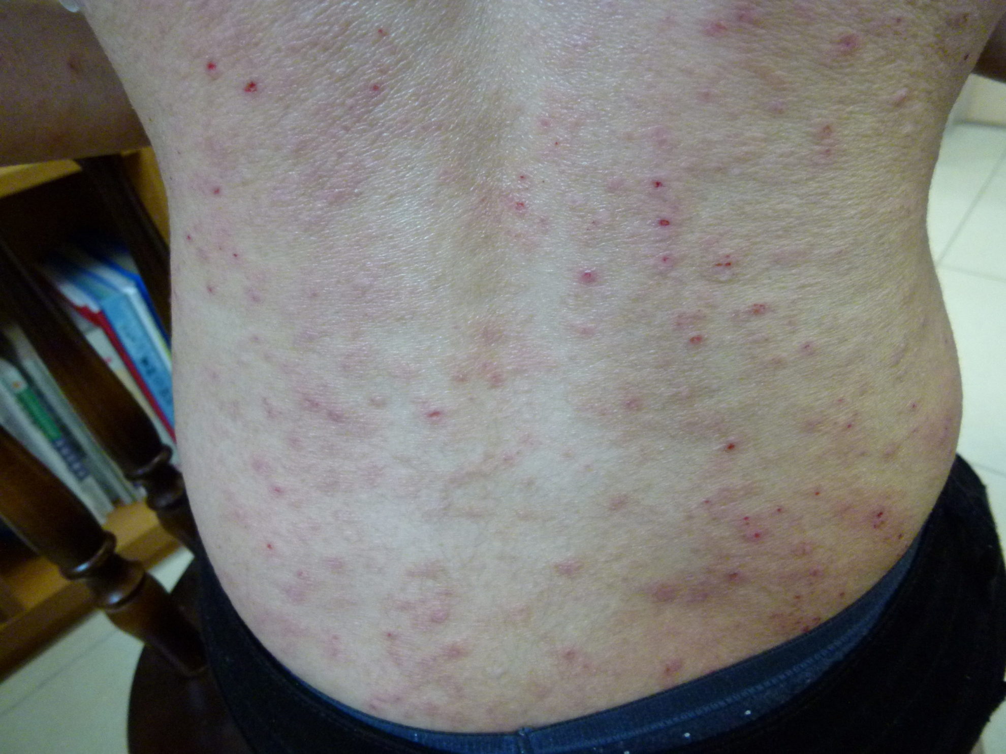 顔は赤くて全身ドライスキンで掻き傷だらけです。