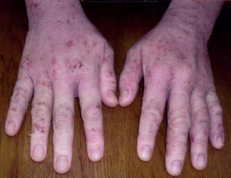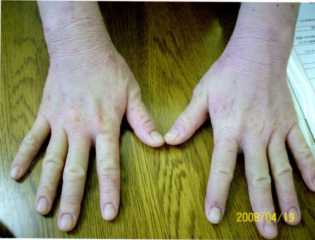 全身赤く腫れ、かゆみが激しく、亀裂を生じて、ものに触れると痛みがひどくなります。