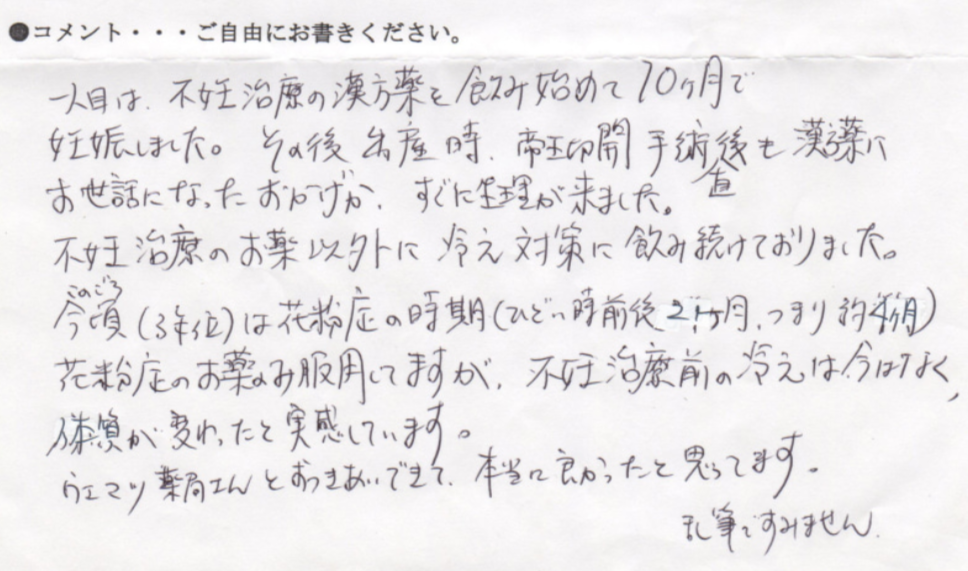 その後出産時、帝王切開、手術直後も漢方薬にお世話になったおかげか、