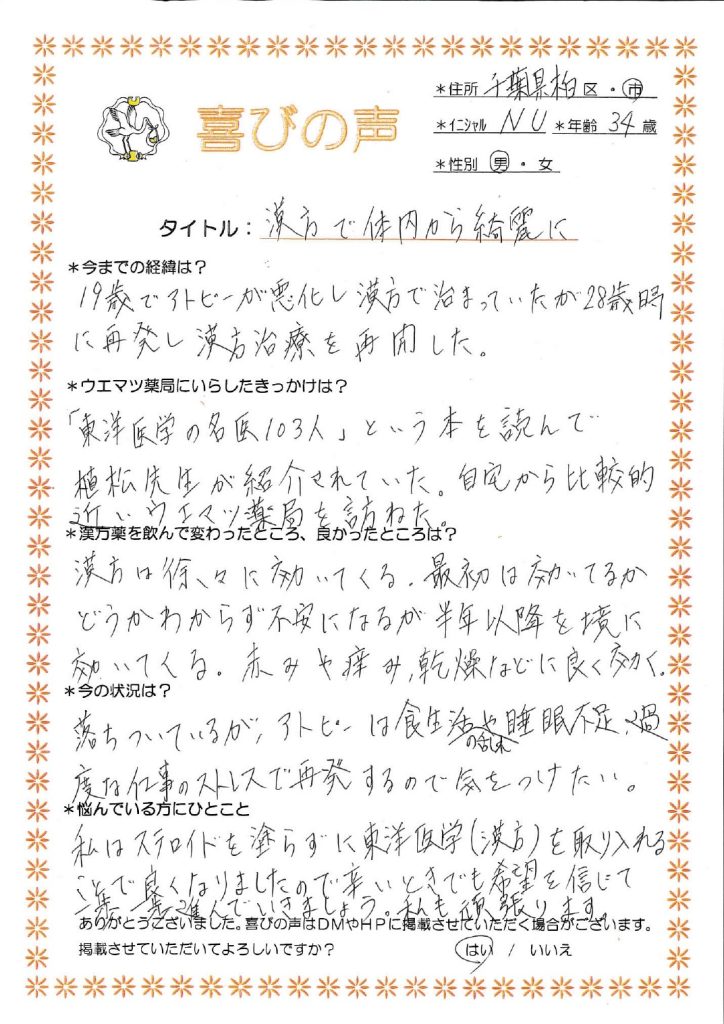 19歳でアトピーが悪化し、漢方で治まっていたが、