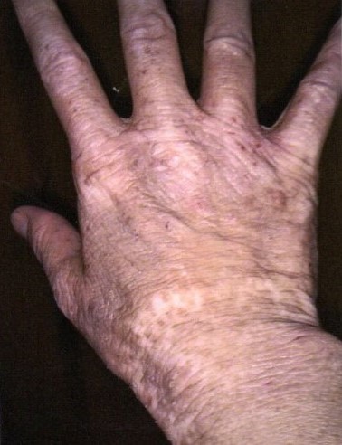 掻きむしりで色素が落ちて白くなったところが目立って、気にされていましたが