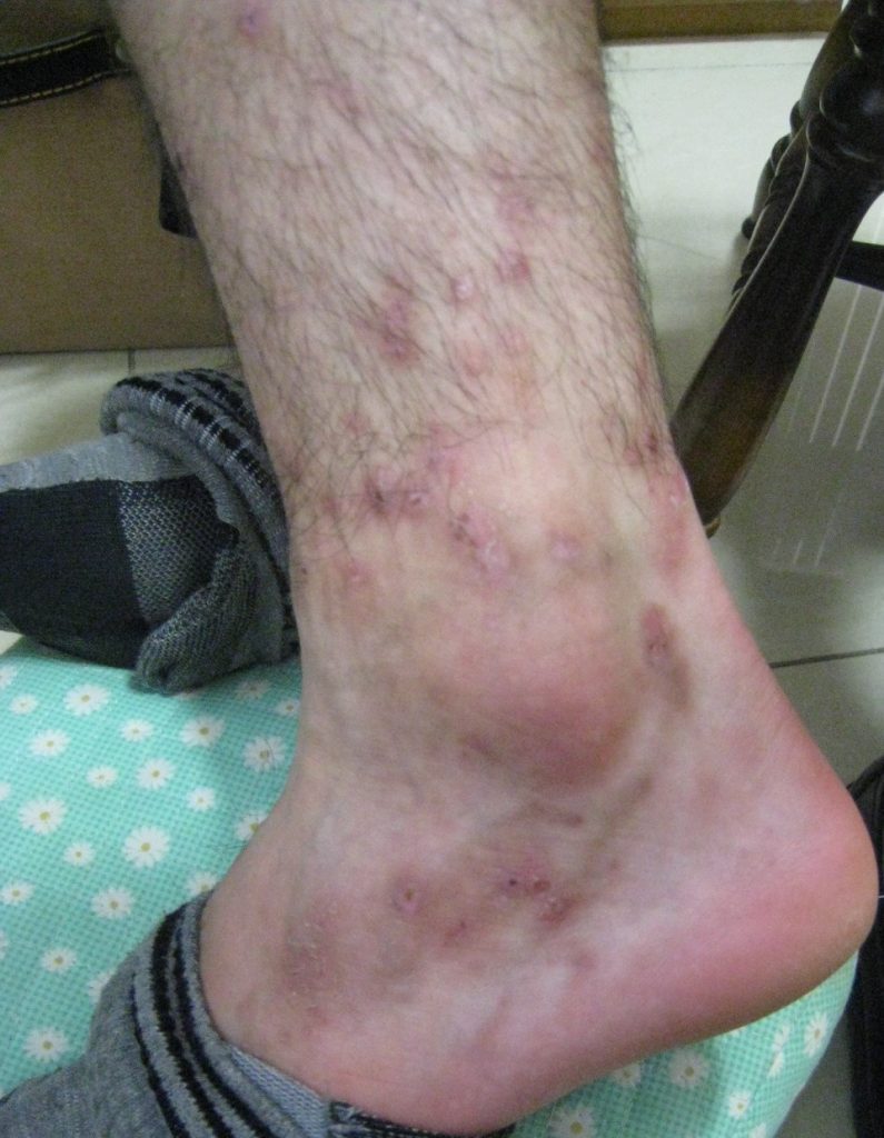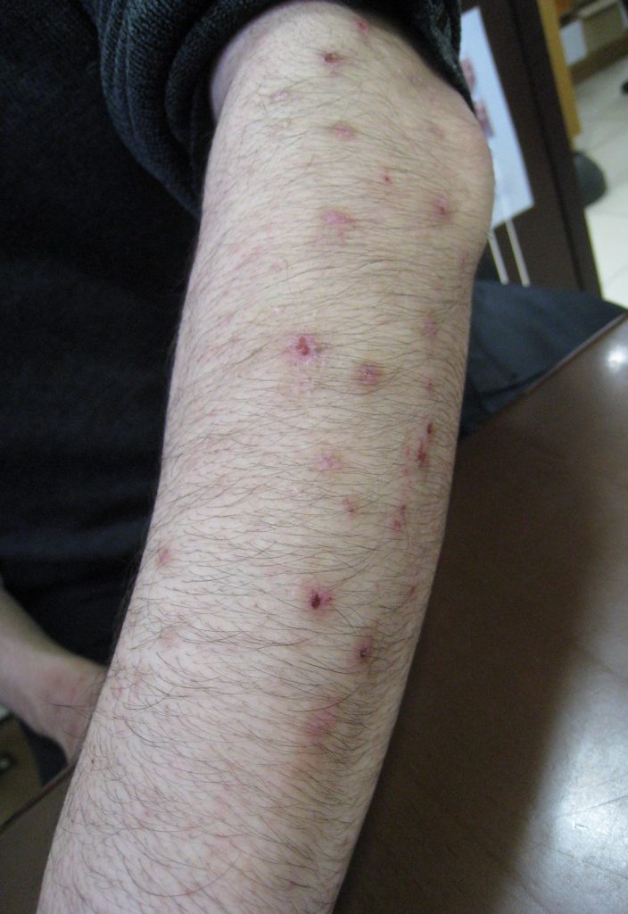痒疹は一つ一つの丘疹をかきむしることにより、さらに悪化し、汁が出て非常にかゆく辛い皮膚炎です。