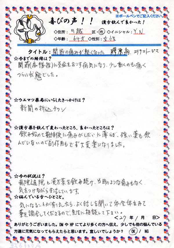 膠原病 エリテマト-ジス(関節の痛み)が軽くなりました。