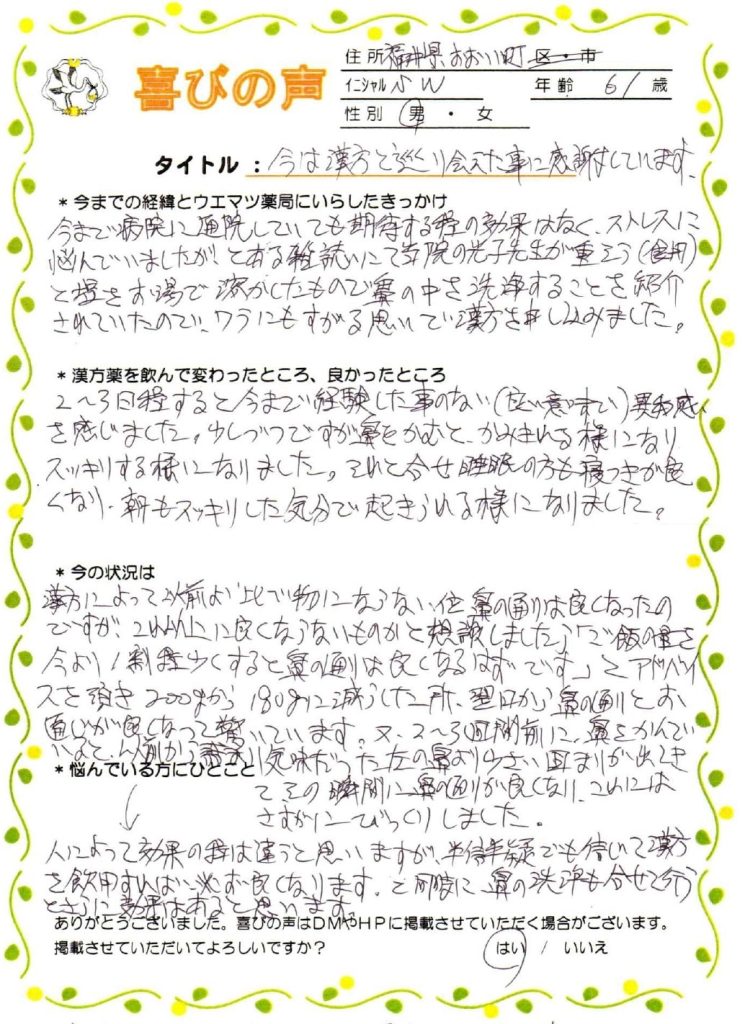 鼻の中の洗浄を紹介していたので、藁をもすがる思いで漢方相談を申し込みました。