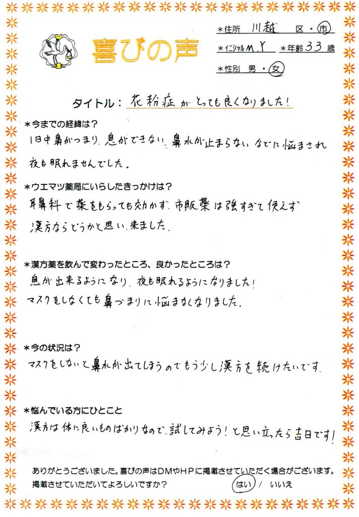 マスクをしないと鼻水が出てしまうので、もう少し漢方を続けたいです。