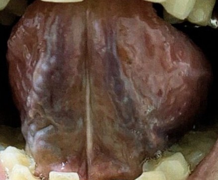 舌の裏の静脈、舌下静脈を拝見しますと、怒張と言って血流が悪いので、紫色に血流が詰まって膨らんでいました。