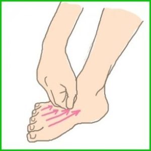 足の甲にある骨にそって、指の付け根から足首に向け、