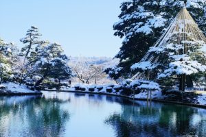 山々は雪に覆われ、平野にも雪が降り積もります。