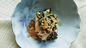 オクラとモロヘイヤをゆでて、みじん切りにして、