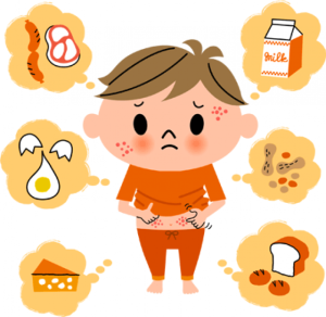 卵、魚介類、牛乳、落花生、大豆、小麦や一部の果物です。